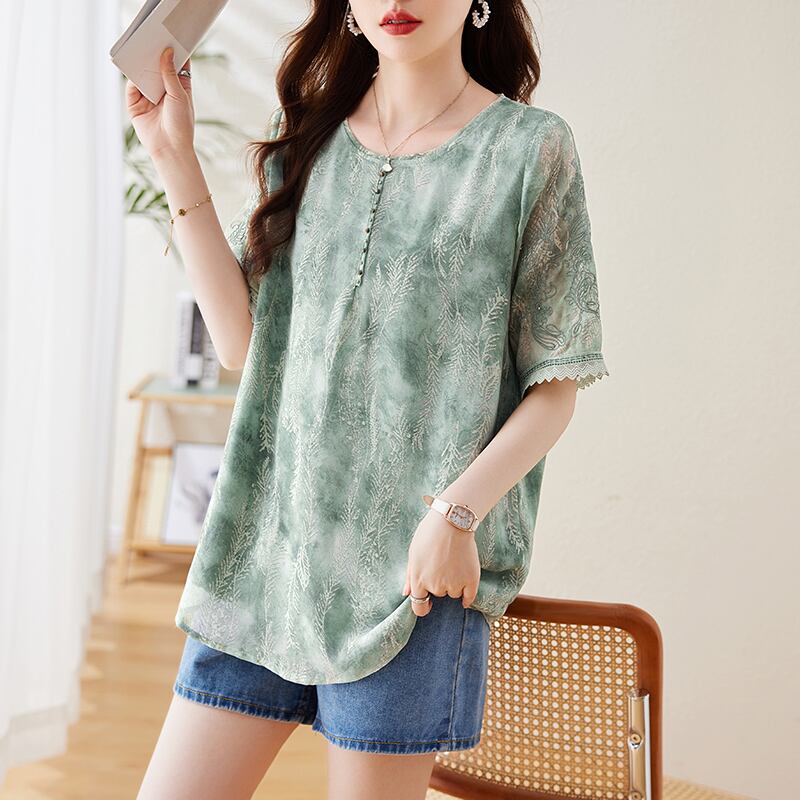 初回送料無料 半袖シャツ 上着 ジャカードシフォントップス レディースファション商品 人気上着