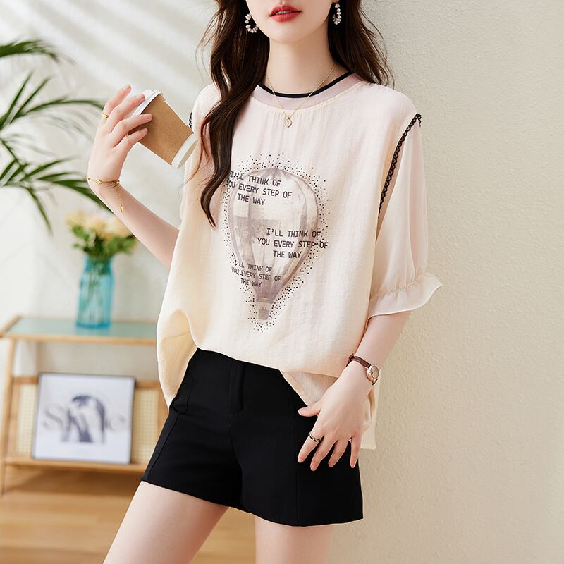 初回送料無料 半袖シャツ 上着 シフォンプリントトップス レディースファション商品 人気上着