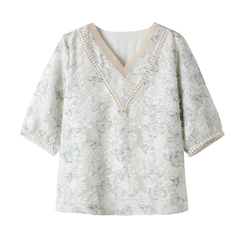 初回送料無料 半袖シャツ 上着 シフォン vネックプリントトップス レディースファション商品