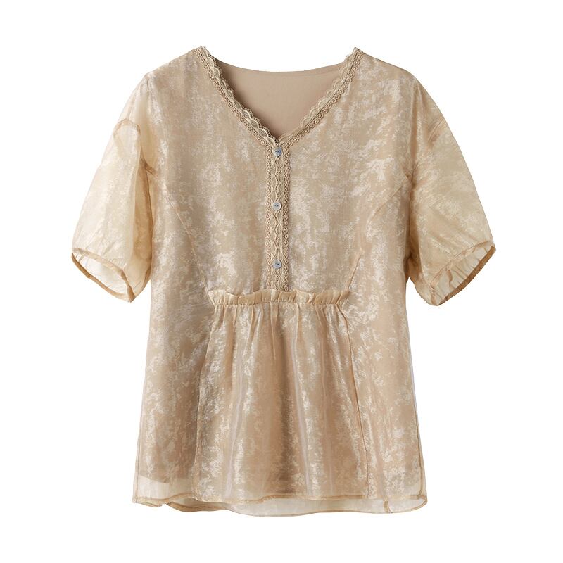 初回送料無料 半袖シャツ 上着 レース付き vネックトップス レディースファション商品 カジュアル