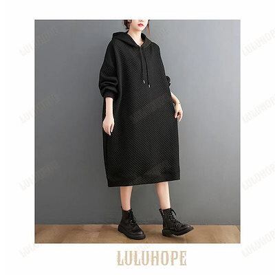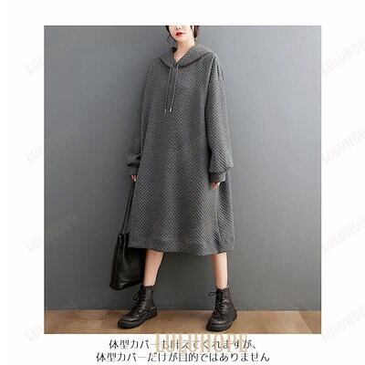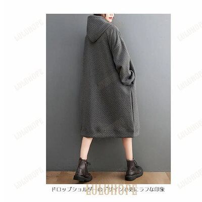 ロングパーカー レディース フード付きワンピース 春秋 オーバーサイズ パーカー ひざ丈 Aラインワンピース 体型カバー ワンピース 大きいサイズマウンテンパーカー