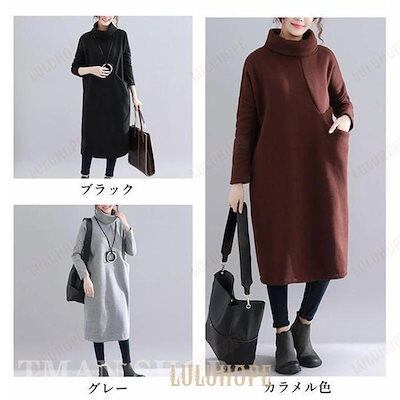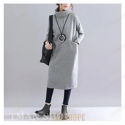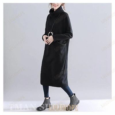 パーカーワンピース レディース 長袖 ハイネック ロング丈 裏起毛 無地 大きいサイズ ゆったり カジュアル 暖かい ファッション 秋冬物 新作マウンテンパーカー