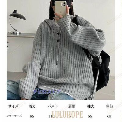 ニットパーカー レディース ニット 厚手 パーカー プルーオーバー トップス フード付き ニットセーター オーバーサイズ 体型カバー プルパーカー