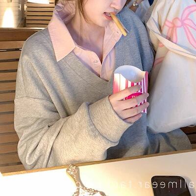 アイビーダイアリー スプライシングフェイクツーピース スウェットシャツ レディース プルオーバー カジュアル ルーズ トップ 秋