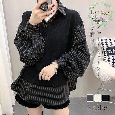 パーカー レディース プルオーバー スエット レイヤード カットソー tシャツ トップス ストライプ柄 ブラウス ゆったり 体型カバー カジュアル
