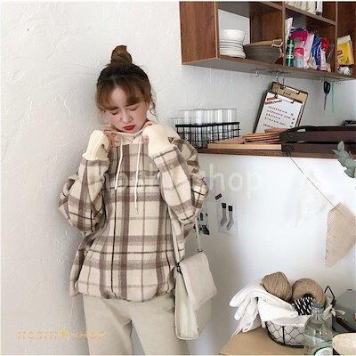 裏起毛パーカー レディース パーカ オシャレ 2色 チェック柄 一枚で楽しい プルオーバー 長袖 ボアパーカー 大人 スウェットトップス Tシャツ アウター