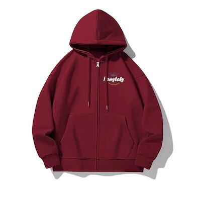 新しい 人气新作韓国 パーカー 着痩せ 長袖tシャツレディース Tシャツパーカーレトロなワインレッドの文字がプリントされたセーター 新しい秋と冬のジップカーディガンジャケットインス