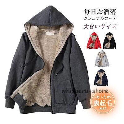 パーカー レディース 長袖ジャケット 裏起毛 暖かい 防風 アウター 大きいサイズ フード付き 防寒着 シンプル 部屋着 薄めボア