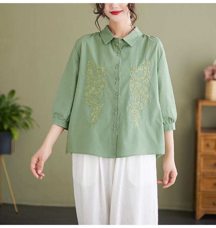 初回送料無料刺?シャツゆったりサイズコットンリネン七分袖ラージサイズトップス