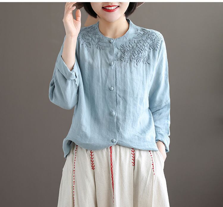 初回送料無料刺?シャツゆったりサイズコットンリネンシャツプラスサイズトップス
