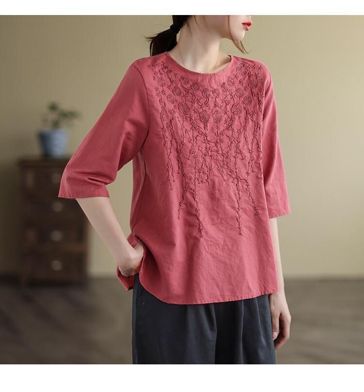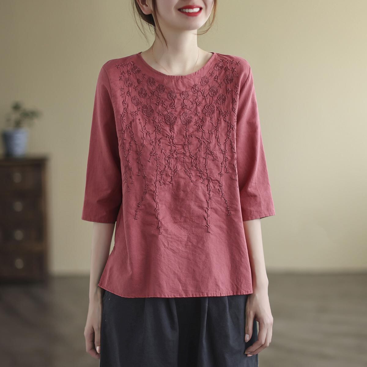 初回送料無料刺??レディーストップスゆったりサイズトップコットンリネンTシャツプラスサイズ