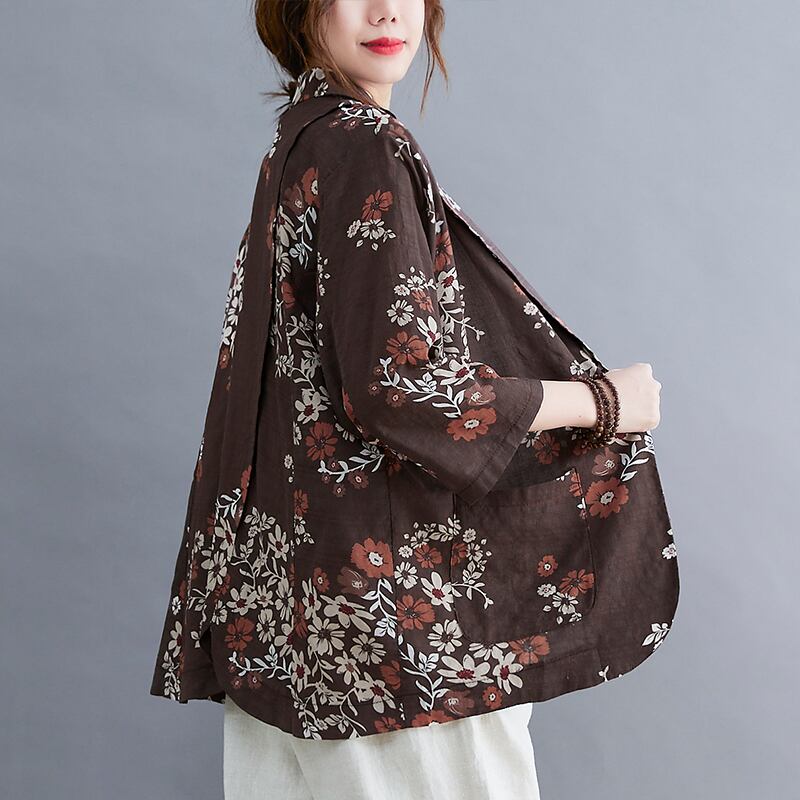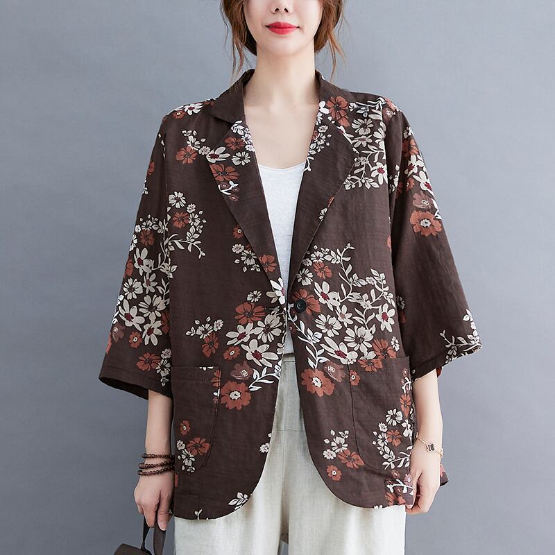 初回送料無料ゆったりサイズトップトップスコートコットンリネンスリジャケットレディース