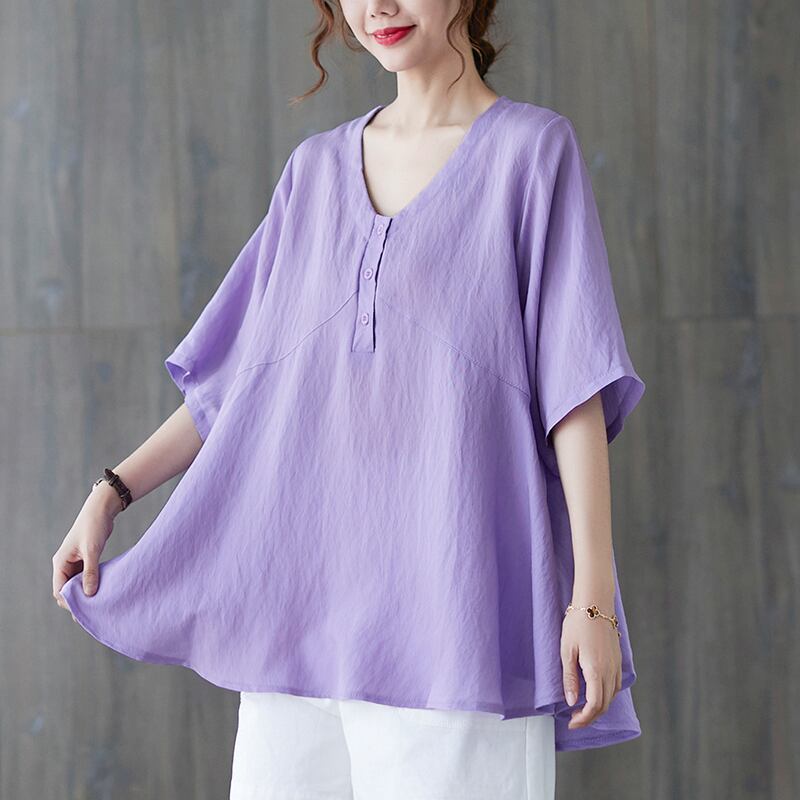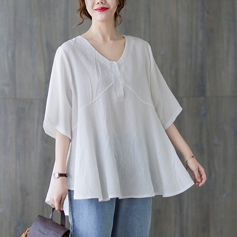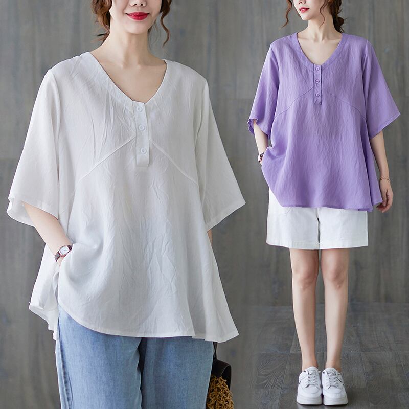 初回送料無料ゆったりとしたミッドスリーブトップスとサイズのVネックTシャツトップス人気