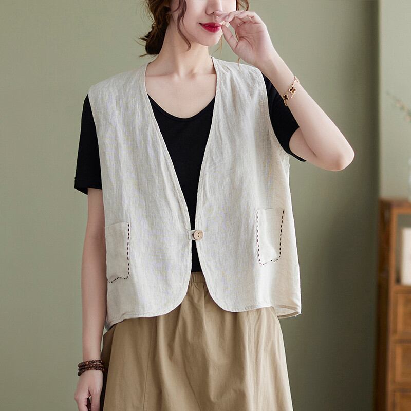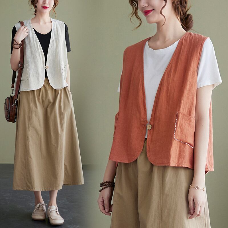 初回送料無料ゆったりサイズコットンリネン棉麻ベストトップスラージサイズ