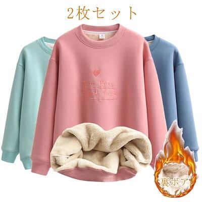 トレーナー 裏起毛 レディース メンズ 秋冬 春 スウェット 2枚組 冬 トレーナー 大きいサイズ プルオーバー 長袖 クルーネック 英語 刺繍 スエット 厚手 防寒 トップス 裏フリース 冬服 秋冬