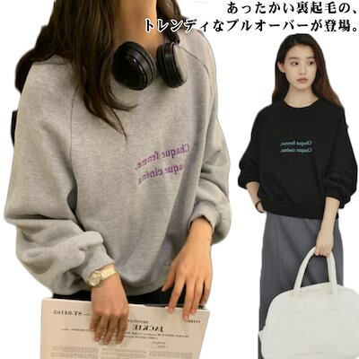 スウェット レディース 裏起毛 トレーナー トップス クルーネック プルオーバー 秋 冬 長袖 厚手 あったかい 暖かい 秋冬トップス ルームウェア トップス ショート丈 オーバーサイズ 体型カバー
