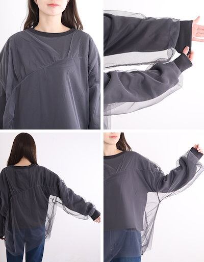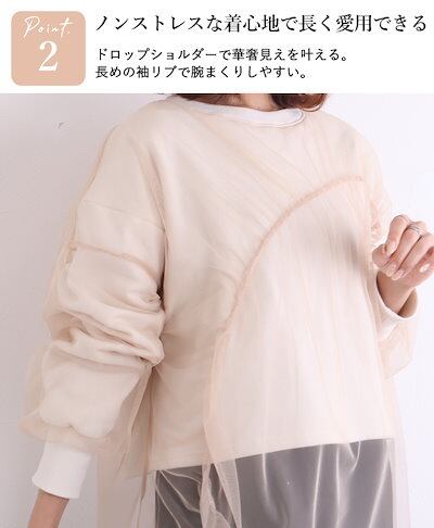 トレーナー 裏起毛 レディース おしゃれ チュール 秋冬 オシャレ スウェット プルオーバー トップス チュール重ね 綿混 あったか 無地 ゆったり 大きめ 裏起毛トップス 冬 厚手 暖かい