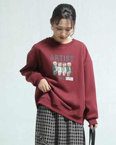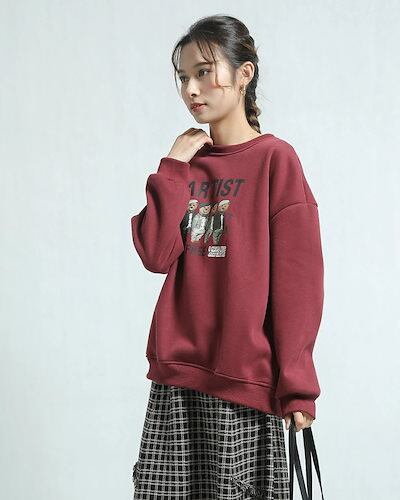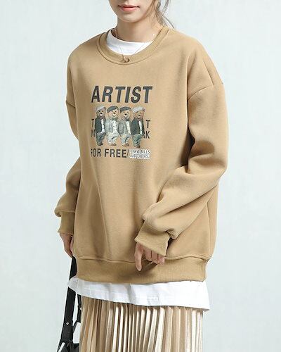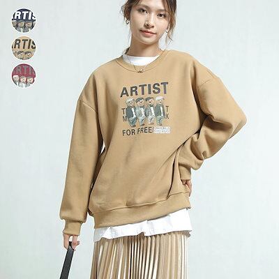 アートプリント 裏起毛 スウェット レディース プリント レディース スウェット レーナー プリント クルーネック 丸首 ビッグシルエット スウェット おしゃれ 裏毛 トレーナー ファッション