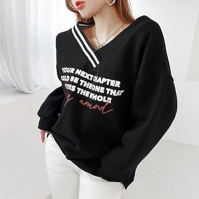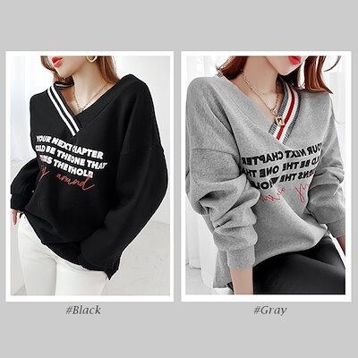 トップス レディース トレーナー 裏起毛 Vネック 長袖 英字 ロゴ プリント ゆったり スウェット ビッグシルエット カジュアル 秋 冬 韓国 to23790
