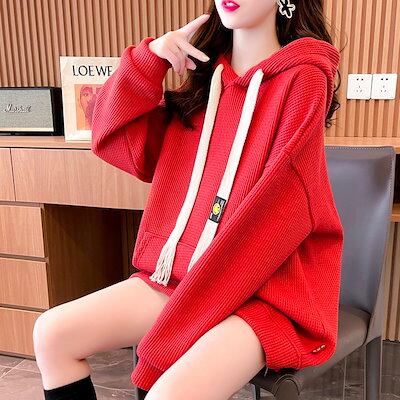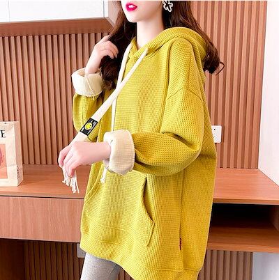 トップス パーカー 膝上 袖あり 長袖 ボリューム袖 萌袖 襟なし レディース 個性的 裾ワイド もこもこ ふわふわ フード付き 厚手 裏起毛 大人 かわいい カジュアル おしゃれ 10代 20代