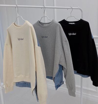 【送料無料】レディース 3カラー プルオーバー デニムドッキング ロゴプリント 裏起毛