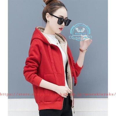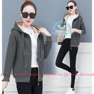 パーカー レディース 厚手 裏ボア 裏起毛 トレーナー 秋 冬 前開け カジュアル 2019 カット