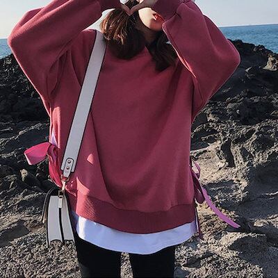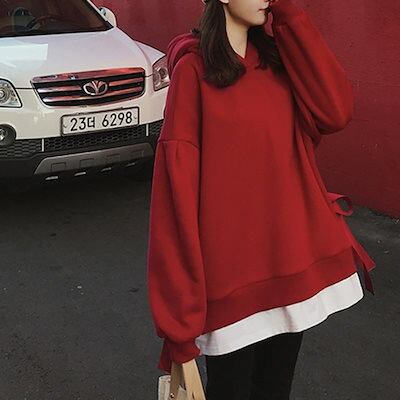 3color スウェット 裏起毛 フード付き ドッキングデザイン 着痩せ 韓国ファッション