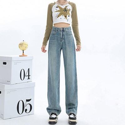 デニムボトムス ニューデザイン ストレートパンツ レディース 脚長効果春秋 ハイウェスト 体型カバー ファッション モップパンツ ワイドパンツ ジョガーパンツ 体型カバー30%制限