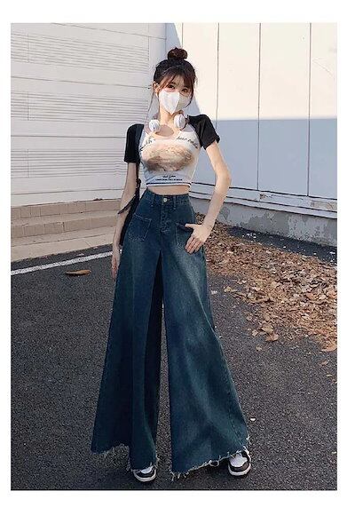 ワイドパンツ デニム レディース 春 秋 ガウチョパンツ ワイドデニム デニムパンツ 体型カバー ジーンズ ハイウェストデニム ロングパンツ 大きいサイズロング丈 華奢見え おしゃれ ゆったり カジ