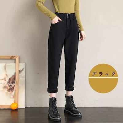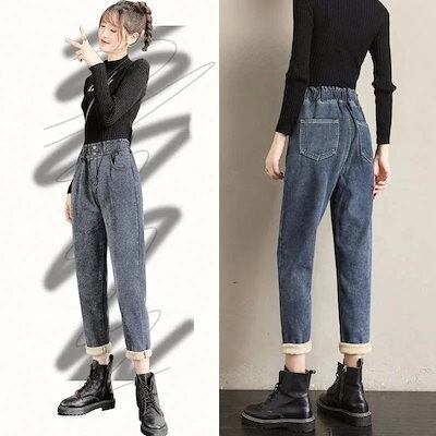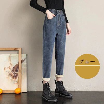 裏起毛ファッション 厚手 ジーンズ レディース 秋冬 ワイドパンツ ゆったり 着痩せ ハーレムパンツ