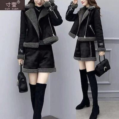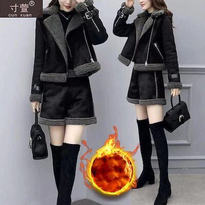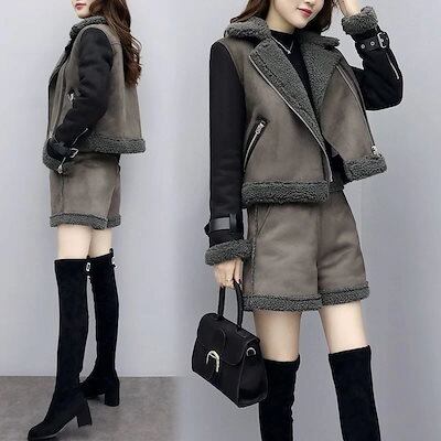 セットアップ レディーファッション 裏起毛 ジャケット+ショートパンツ 保温 上下2点セット