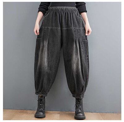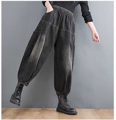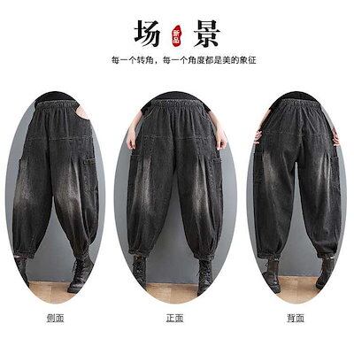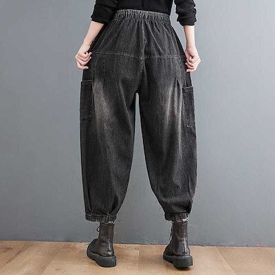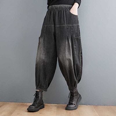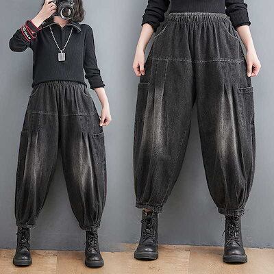 「ファットガール」 2024冬新品 裏起毛 サルエルパンツ ゴム テーパーパンツ デニムパンツ 大きいサイズ 体型カバー レディース ジーンズ メガ割