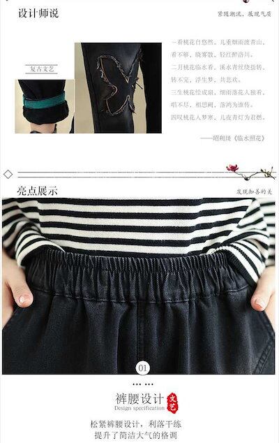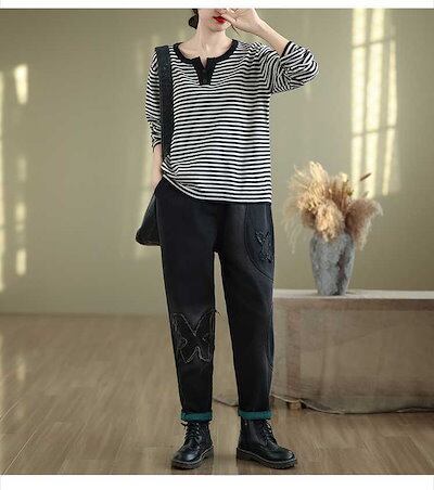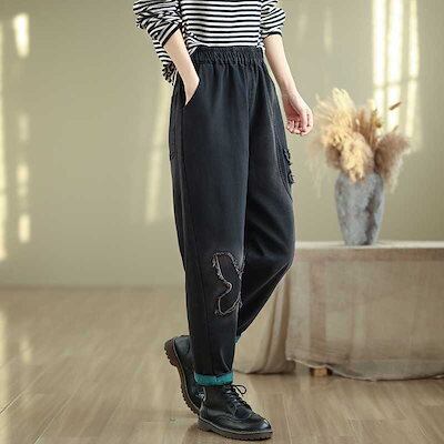 「ファットガール」 2024冬新品 裏起毛 デニムパンツ テーパードパンツ 蝶柄刺繍 大きいサイズ 体型カバー 厚手 保温 レディース ロングパンツ ジーンズ メガ割