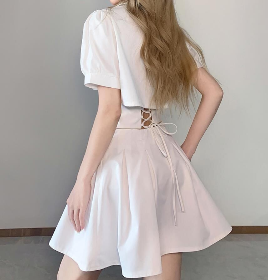 2022春夏新作 女 レディース ハイウエスト 半袖 ミニ ワンピース ドレス 台型スカート