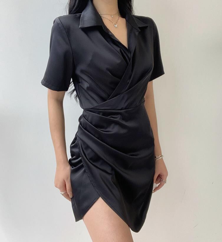 2022春夏新作 女 レディース ハイウエスト 半袖 無地 ミニ ワンピース ドレス タイトスカート S-L