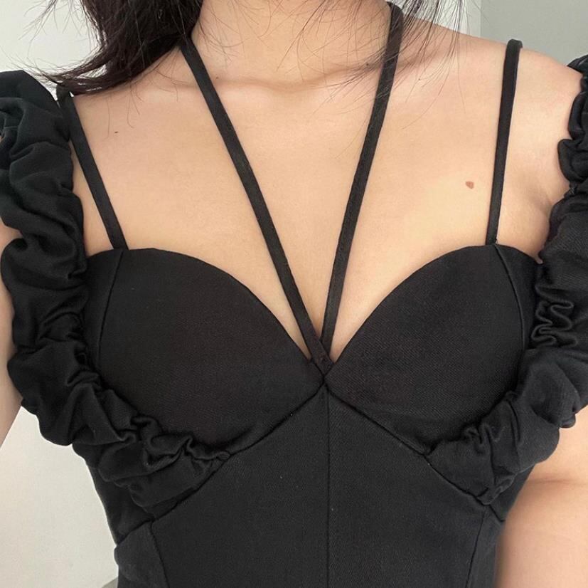 春夏新作 女 レディース ハイウエスト 袖なし 無地 吊りスカート ミニ ワンピース ドレス 台型スカート