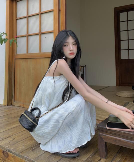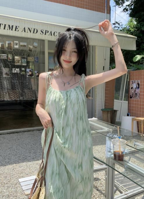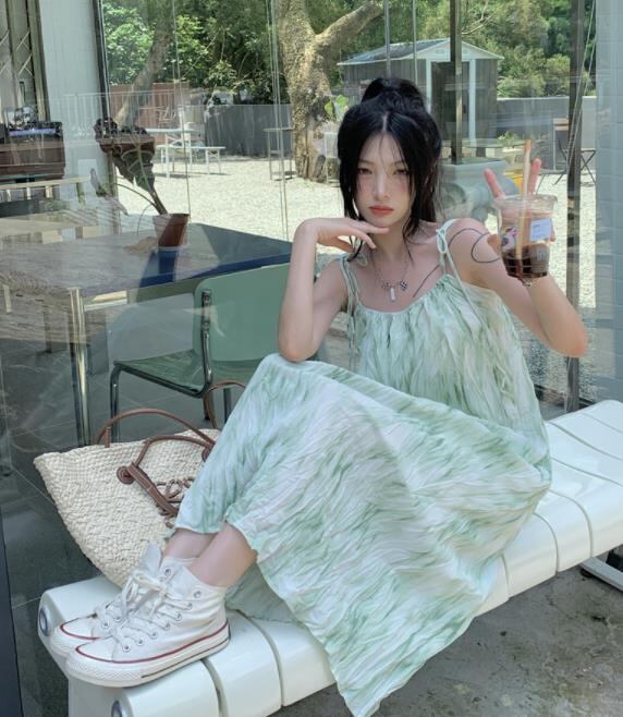 2022春夏新作 女 レディース ハイウエスト 袖なし 吊りスカート ロング ワンピース 台型スカート 2色