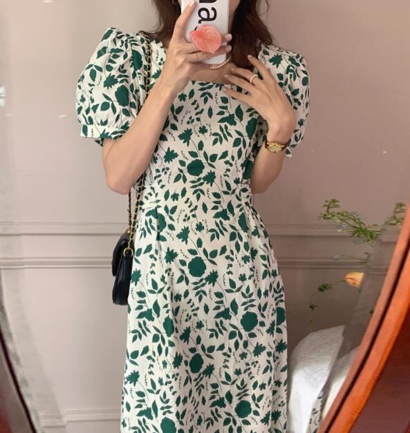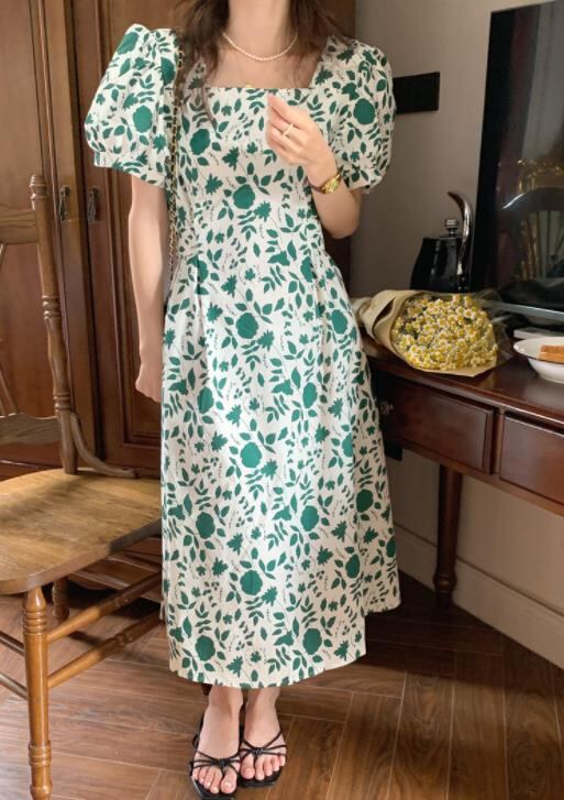 2022春夏新作 女 レディース ハイウエスト 半袖 花柄 ロング ワンピース 台型スカート S-2XL