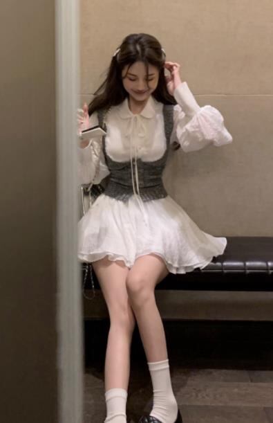 2024春夏新作 女 レディース 長袖 ミニ ワンピース ドレス 台型スカート セット