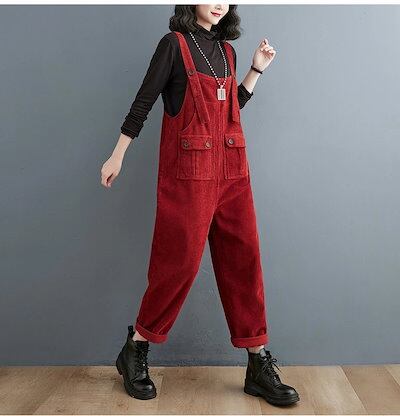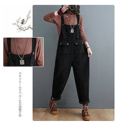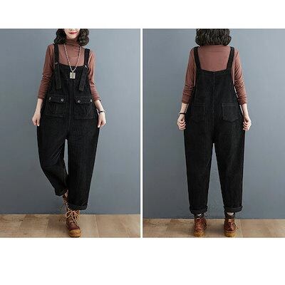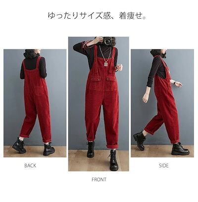 コーデュロイ サロペット 大きいサイズ オーバーオール オールインワン チノパン ビッグシルエット パンツ ボトムス 絞り裾 ロングパンツ サロペットパンツ ポケット付き マタニティ レディース ユニ