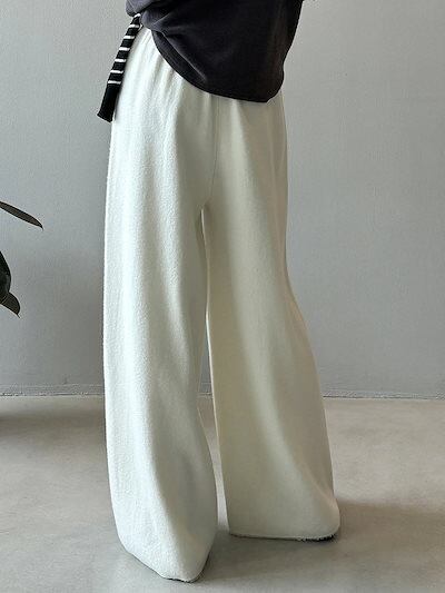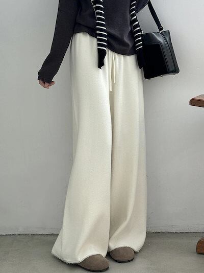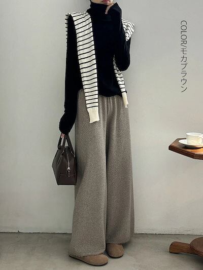 ウール混 ニット ワイド パンツ レディース ボトム ワイドパンツ ニットパンツ ウエストゴム ストレート 体型カバー ゆったり 楽ちん イージー ハイウエスト ロングパンツ ロングズボン ストレート