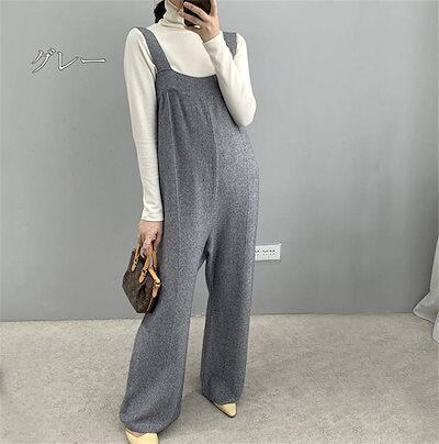 サロペット オールインワン レディース オーバーオール ニット knit ワイドパンツ ロング丈 ボトムス 無地 秋冬 おしゃれ コーデ 通勤 OL オフィス マタニティ