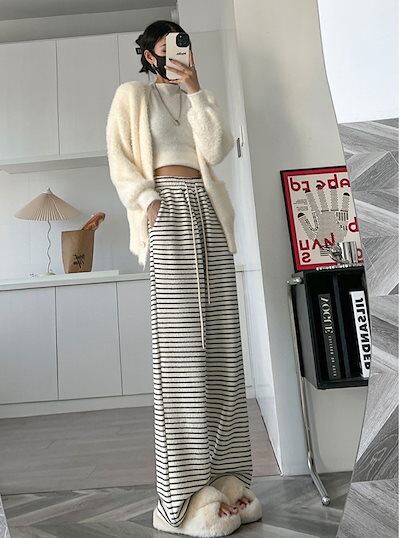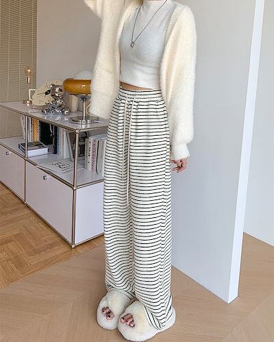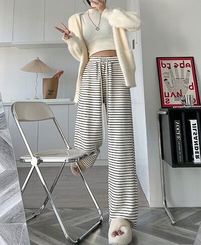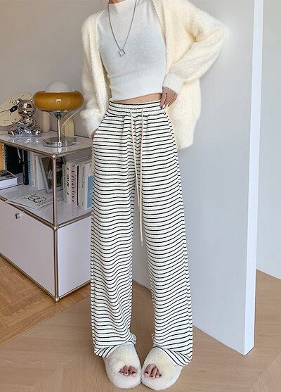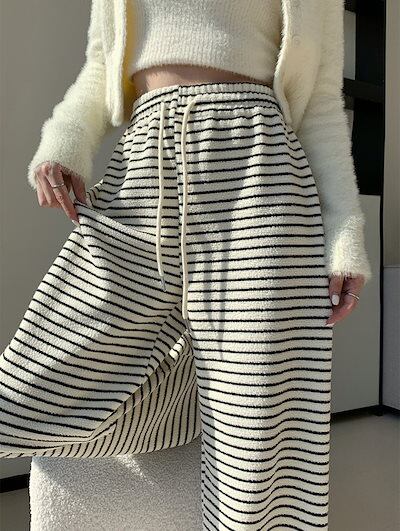 パンツ ルームウェア 2色 ワイドパンツ 長ズボン ボーダー柄 ハイウエスト ゆったり ストレート スウェットパンツ ボトムス レディース 春 夏 秋 シンプル カジュアル フォーマル ストライプ