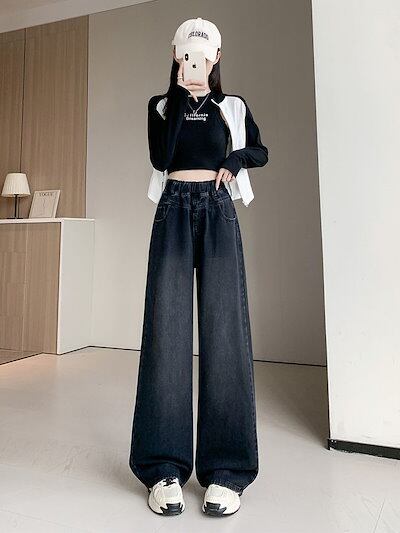 大きいサイズ 裏起毛 ジーンズ レディース カジュアル ストレート ワイドパンツ ゆったり 着痩せ ハイウエスト ロングパンツ