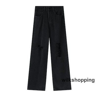ダメージジーンズ レディース デニムパンツ ダメージ ジーンズ デニム パンツ ボトムス ワイドパンツ ワイドデニム ハイウエスト ダメージパンツ 太もも
