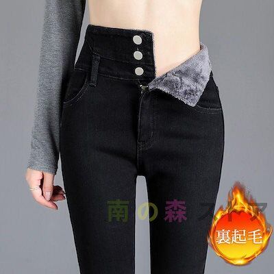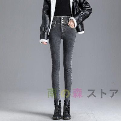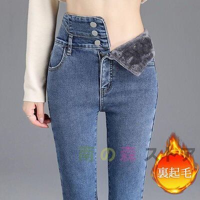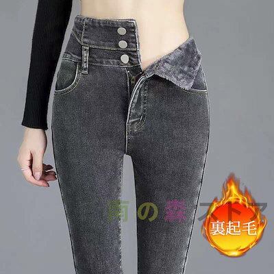 デニムパンツ レディース ジーンズ 裏起毛 裏ボア ハイウェスト 暖かい 秋冬 ストレート Gパン ボトムス 美脚 脚長 保温 防風 おしゃれ
