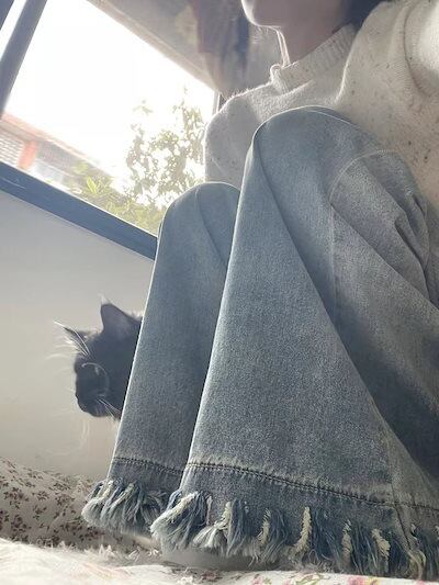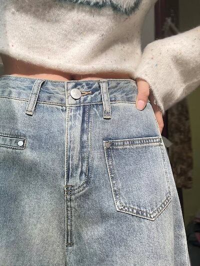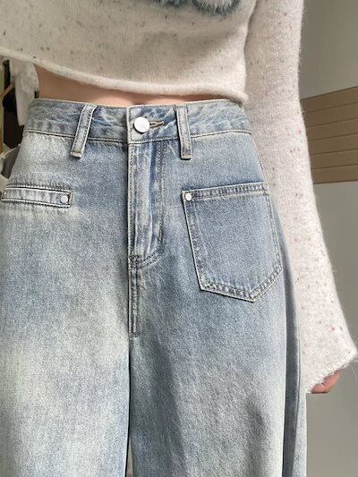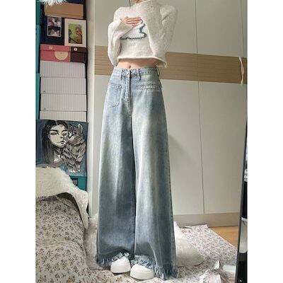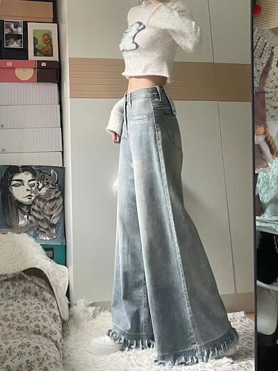 レトロ 切りっぱなし ワイドパンツ レディース 秋服 ロングパンツ ジーンズ ハイウエスト 着痩せ ストレートパンツ ゆったり 百掛け 垂れ感 モップパンツ