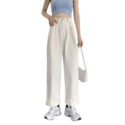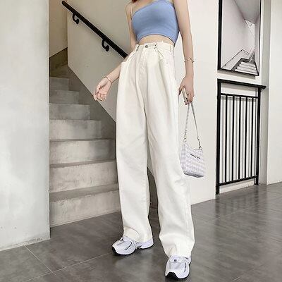 デニムパンツ韓国ファッション ストレート 美脚 デニムパンツ レディースポケット ブルー デニムジーンズ運動用デニムパンツデニムパンツ 2025福袋