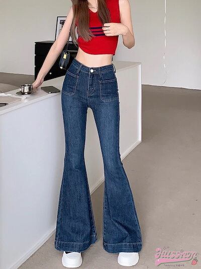2024夏秋 パンツ デニム ジーンズ 韓国ファッション レディース お出かけ スキニー ワイドレッグハイウエスト 脚長効果 美脚効果 細見え 秋 カジュアル