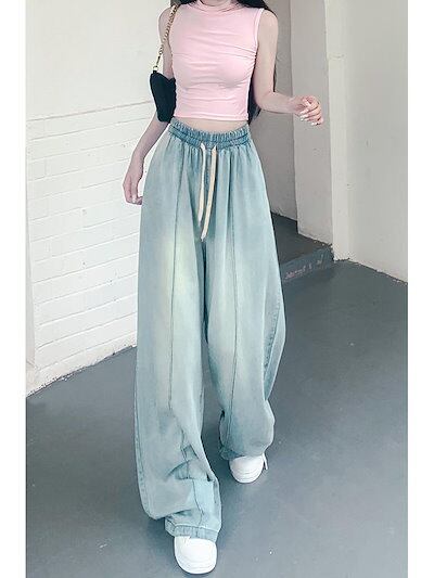 ジーンズ デニム レディース ハイウエスト 夏服 ジョガーパンツ ガウチョパンツ 薄手 デニムパンツ